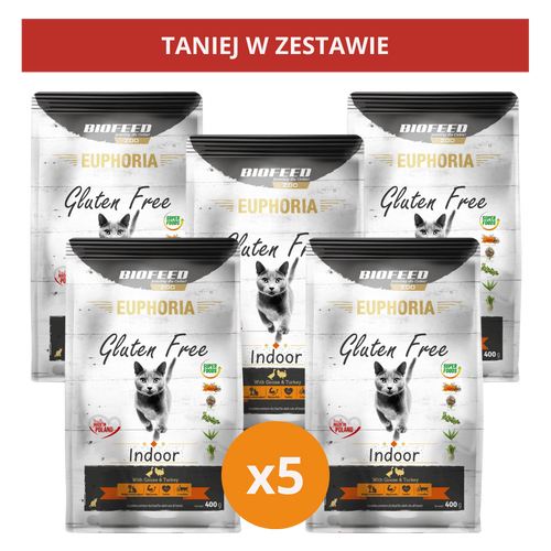 ZESTAW: Karma dla kotów EUPHORIA Gluten Free Cat INDOOR Indyk & Gęś 5x400 g